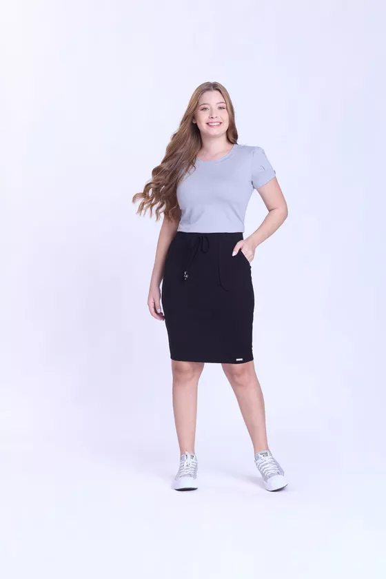 A saia Rebeca foi confeccionada em malha canelada, tecido confortável com uma ótima elasticidade. O modelo apresenta elástico interno no cós, os bolsos são funcionais, o shape é justo valorizando a silhueta e possui forro para melhor acabamento. Essa peça é super versátil, possibilitando várias combinações de looks. Saia linda e confortavel!