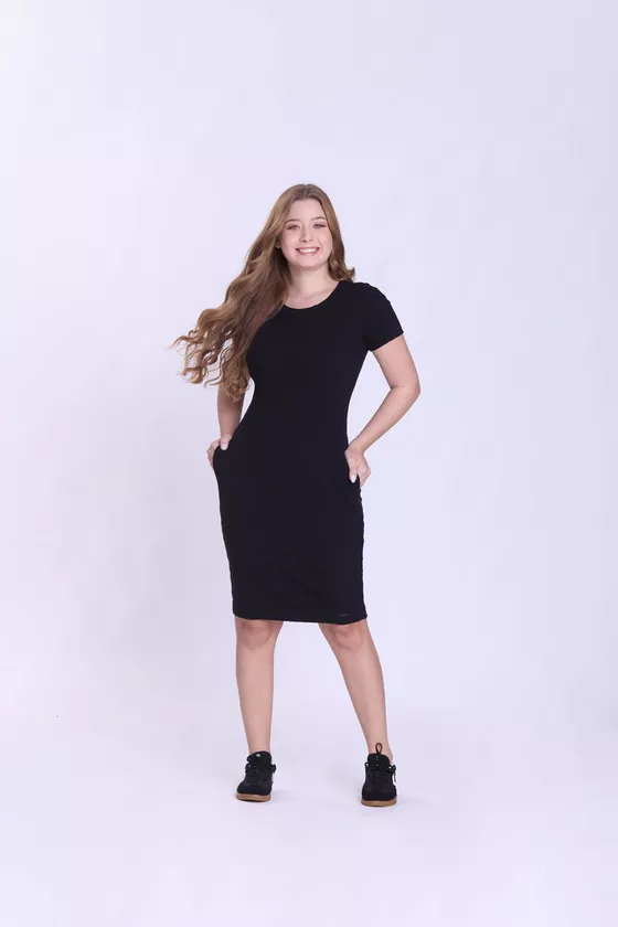 O vestido Celina foi confeccionado em malha canelada. O modelo apresenta decote redondo, suas mangas são curtas, os bolsos são funcionais e o shape é justo. Esse vestido Celina é muito confortável, sendo ideal para o dia a dia. Lindo e confortavel!